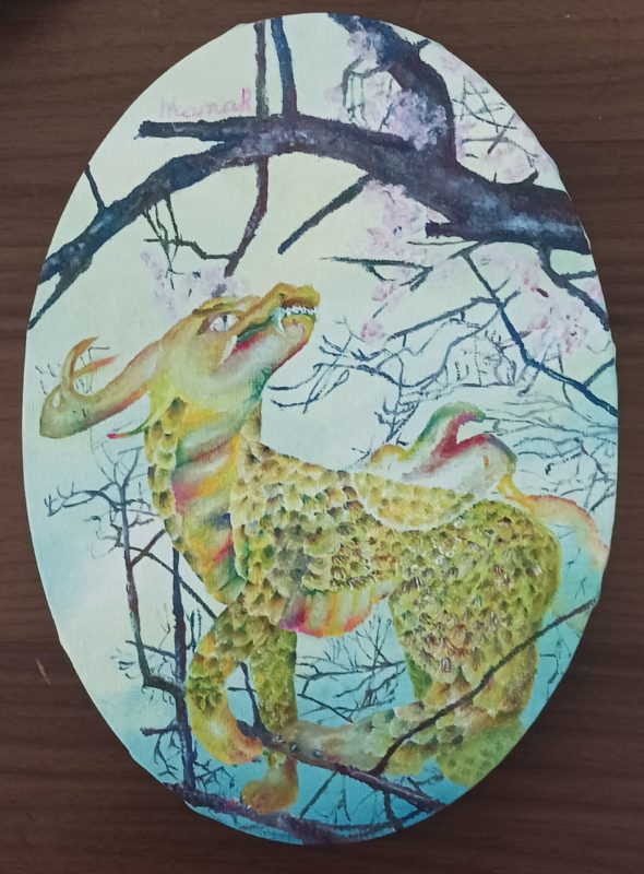 HOME > Gallery > 睚眦(ヤー・ツー) 2026年2月8日 睚眦(ヤー・ツー) 素材:キャンバスに油彩 サイズ:サムホール楕円形 販売価格:¥88,000 送料:着払い ご購入はこちら Twitter Share LINE
