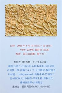 HOME > Exhibition&Event > Exhibition > かよう会展2026 2026年3月2日 かよう会展2026 会期:2026年3月10日㈫~15日㈰ 場所:国立公民館1階ロビー Twitter Share LINE